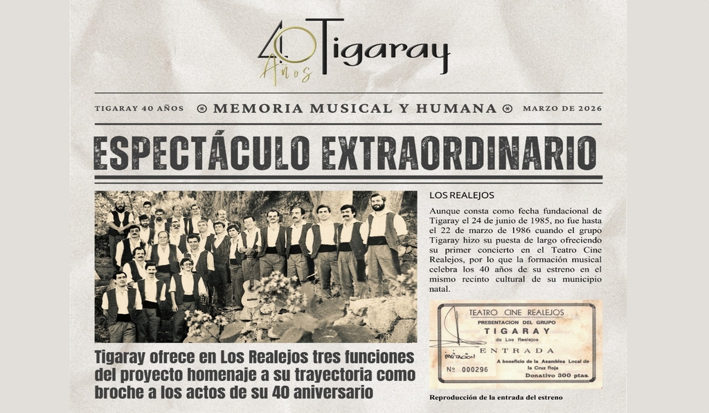 Este mes de marzo, Tigaray cierra su 40º aniversario regresando a su hogar. Volvemos al Teatro Cine Realejos, el mismo escenario que nos vio debutar aquel 22 de marzo de 1986, para presentar: